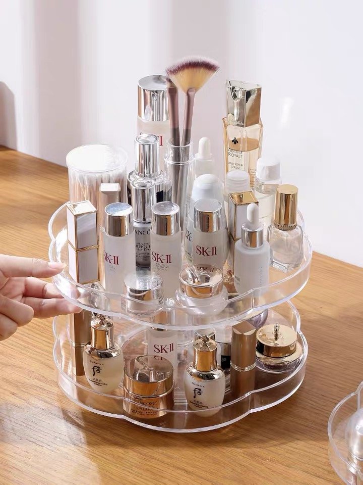 Rotating Makeup Skincare organiser for easy and convenient access to your items. Organise your bottles and beautify your table with this double layer rotatable organiser.